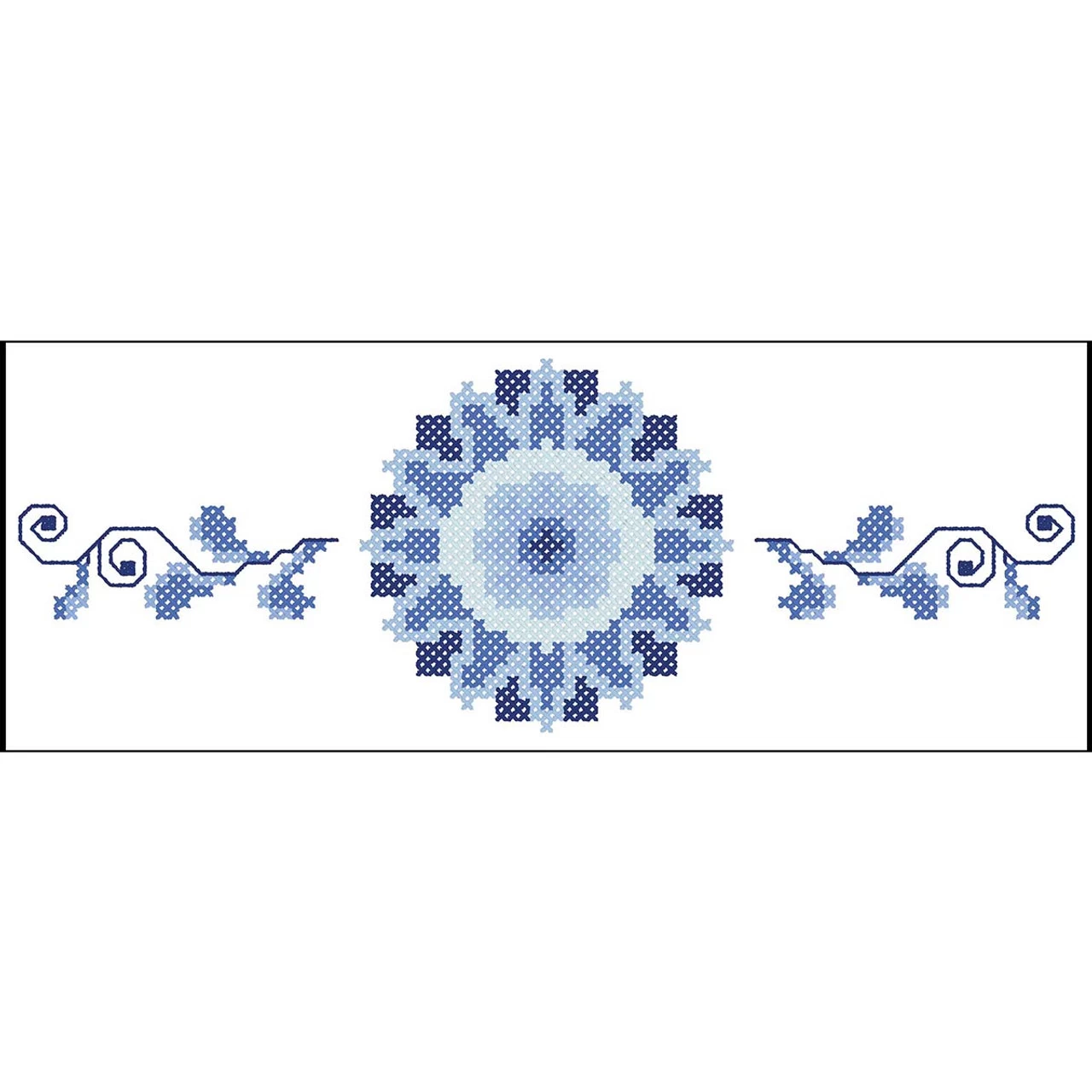 • These pre-finished pillowcases are ready for stitching with a mandala-inspired blue blossom with little blue leaves and vines on each side.
