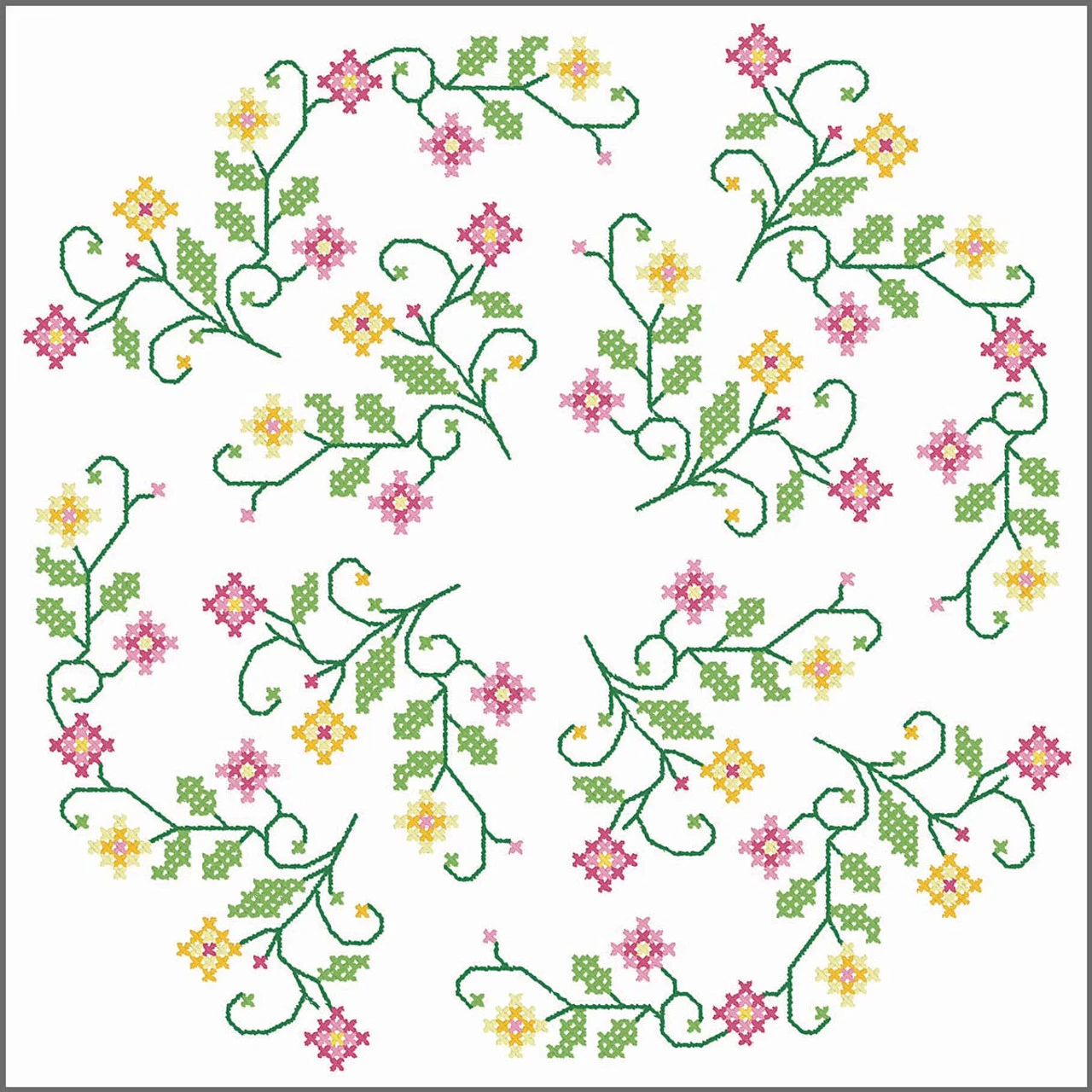 Herrschners Field Of Flowers Quilt Blocks Stamped Cross-Stitch