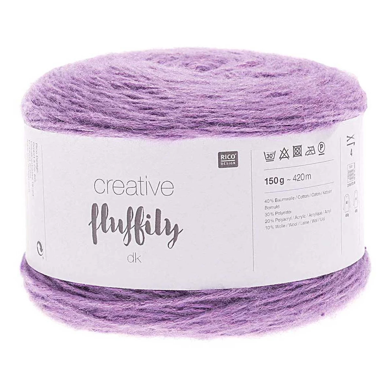 The tubular construction of Rico Yarn Creative Fluffily DK yarn provides excellent stitch definition, making this light weight yarn perfect for textural projects. Each ball of this blended yarn contains 5 ounces (459 yards) of lofty DK weight yarn with a soft halo and a subtle sparkle. This machine washable yarn is perfect for warm and cozy garments and accessories.
