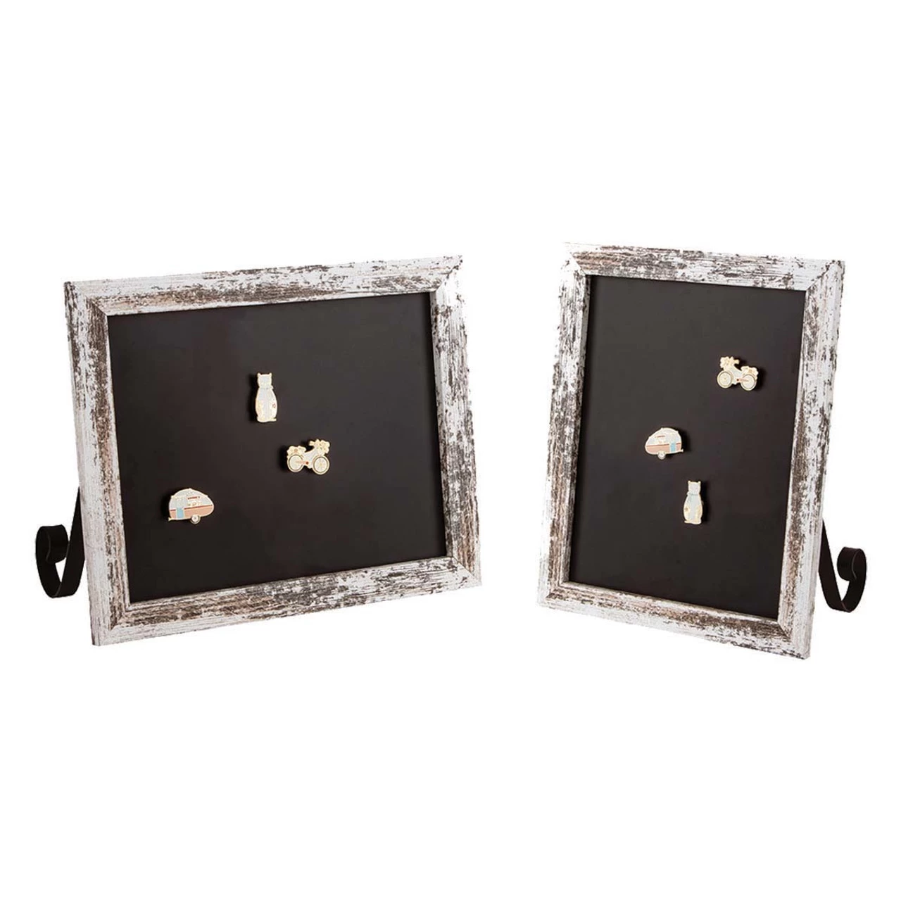 Turn your needle minder collection into an art gallery display in your crafting space. This 11 x 13″ (28 x 33cm) black magnetic display board with a rustic frame can be set on a table or hung on the wall.